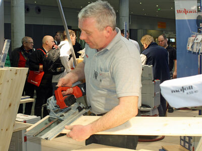 Die vier großen Zylinder in den MAFELL-Farben Rot und Blau waren die Besuchermagneten in der Halle 1. Um die Vorführstände auf 415 m2 Standfläche drängten sich die Fachbesucher, viele auch in Zimmermanns-Kluft. Besucher von Ausbildungszentren und Meisterschulen wurden in Gruppen über die vier quadratischen Standflächen geführt. Zudem besuchten rund 100 MAFELL-Beschäftigte gemeinsam am vergangenen Mittwoch auf Einladung des Unternehmens die Messe und den MAFELL-Messestand.