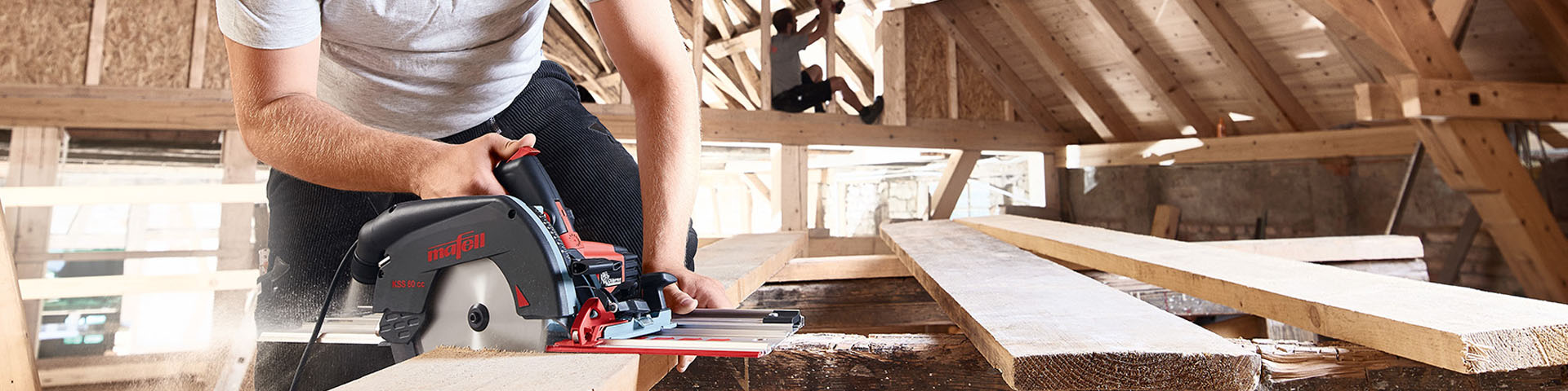 MAFELL bietet mit der KSS 60 zudem eine Lösung für den Zuschnitt von Holzfaserplatten für die Dämmung von Dächern, Decken und Wänden. Dazu ist die Spanführung der Abdeckhaube für das große Spänevolumen von Holzfaserdämmstoffen optimiert worden.