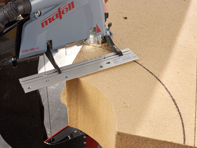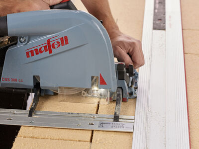 MAFELL präsentiert eine weltweit bislang einzigartige Lösung für den handgeführten Zuschnitt von weichen und druckfesten Holzfaserdämmstoffplatten (HFDP) bis 300 mm Stärke. Die vielseitig einzusetzende Dämmstoff-Seilsäge DSS 300 cc ermöglicht mit einem Sägeseil präzise schienengeführte Schnitte und Freihandschnitte. Das durchdachte System mit einem leistungsstarken Volumensauger und einem portablen Sägetisch ermöglicht zudem staubarmes, sicheres und vor allem wirtschaftliches Bearbeiten von Dämmstoffplatten.