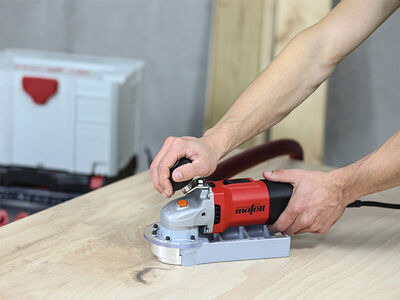 Die Planfräse ist zusammen mit einem Spezialisten für Holzreparaturen entwickelt worden. Die große Auflagefläche der PF 80 erleichtert präzises und sicheres Arbeiten. Der kraftvolle Motor von 1.050 W Nennaufnahme ermöglicht die Bearbeitung von hartem Holz bis 8 mm Frästiefe. Die Spindelarretierung zur Einstellung der Frästiefe ist über den Drucktaster bediensicher von oben zu erreichen.