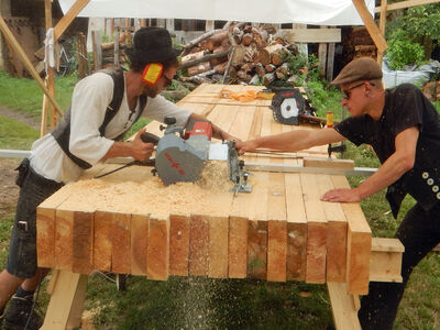 In Gömnigk, einem 250-Einwohner-Dorf im südlichsten Zipfel Brandenburgs, hat sich 2014 „Die Land und Mehr Projekt Initiative“ gegründet. 70 km vom pulsierenden Berlin entfernt entwickelt sich in der ehemaligen Mühle nach dem Konzept des urbanen Mietshäusersyndikats in ländlicher Abgeschiedenheit des Naturparks Hoher Fläming ein generationsübergreifendes Sozial-, Kultur- und Wohnprojekt. 35 Wandergesellinnen und -gesellen, vor allem Zimmer- und Tischlerleute, bauten in zwei Wochen das ehemalige Kornhaus zu einem Veranstaltungsraum und den Dachstuhl des Wohnhauses um. MAFELL hat die sogenannte Sommerbaustelle wie in den vergangenen Jahren mit Zimmereimaschinen und Elektrowerkzeugen unterstützt.