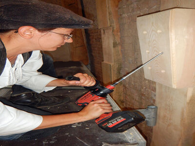 Dass nicht nur die Zimmereimaschinen die notwendige Kraft und Ausdauer bei Arbeiten im Vollholz haben, bewies der MAFELL Akku-Schlagbohrschrauber ASB18 M. Vor allem beim Einschrauben der langen Vollgewindeschrauben (9 x 320 mm). „Lange Akkulaufzeiten, der kraftvolle Motor und ein gutes Handling haben die Arbeiten sehr erleichtert“, berichtet einer der Zimmerleute.