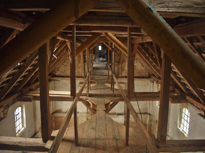 Als Erstes nahmen sich die Wandergesellinnen und -gesellen der Kathedrale an, einem alten Kornhaus mit 77 m² Grundfläche. Das Gebäude, das mit einer Außenmauer am Mühlengraben steht, galt es wieder zu stabilisieren, denn die vorherigen Nutzer hatten ungeachtet der Statik viele Deckenbalken herausgesägt, um die Getreidesilos einbauen zu können. Um die maroden Außenmauern von den Dachlasten zu entlasten, wurden 12 Stiele direkt unter die Fußpfetten gestellt und mit diesen verbunden. Nach der Montage wurden die Stiele kunstvoll mit Schnitzereien verziert. Unter anderem sind nun die Handwerkszeichen der beteiligten Gewerke sowie die Geschichte der Mühle von 1205 bis 2017 dargestellt.
