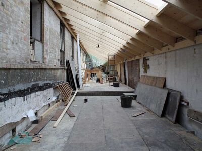 Die historischen, aus rotem Ziegel gemauerten Fabrikgebäude erstrecken sich auf eine Länge von 100 m und stehen parallel zueinander. Dadurch entstand ein schmaler Gang zwischen beiden Gebäude, der wegen umherliegenden Gerümpels nicht zu nutzen war.