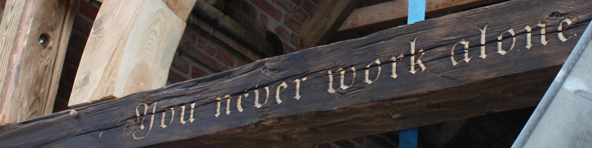 „Die Maschinen von MAFELL haben uns die Arbeit jedenfalls sehr vereinfacht“, meinte Manou fremder Zimmer nach dem Projekt. Als bleibende Erinnerung an die harte Arbeit haben sich die Handwerker und Handwerkerinnen (Tischler, Zimmerleute, Steinmetzin, Schmiedin, Stukkateur und Schneiderin) mit dem Spruch „You never work alone“ sichtbar im Giebelgebälk verewigt.