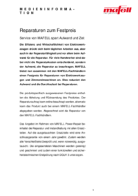 M E D I E N I N F O R M A T I O N Reparaturen zum Festpreis Service von MAFELL spart Aufwand und Zeit Die Effizienz und Wirtschaftlichkeit von Elektrowerkzeugen drückt sich beim täglichen Arbeiten…